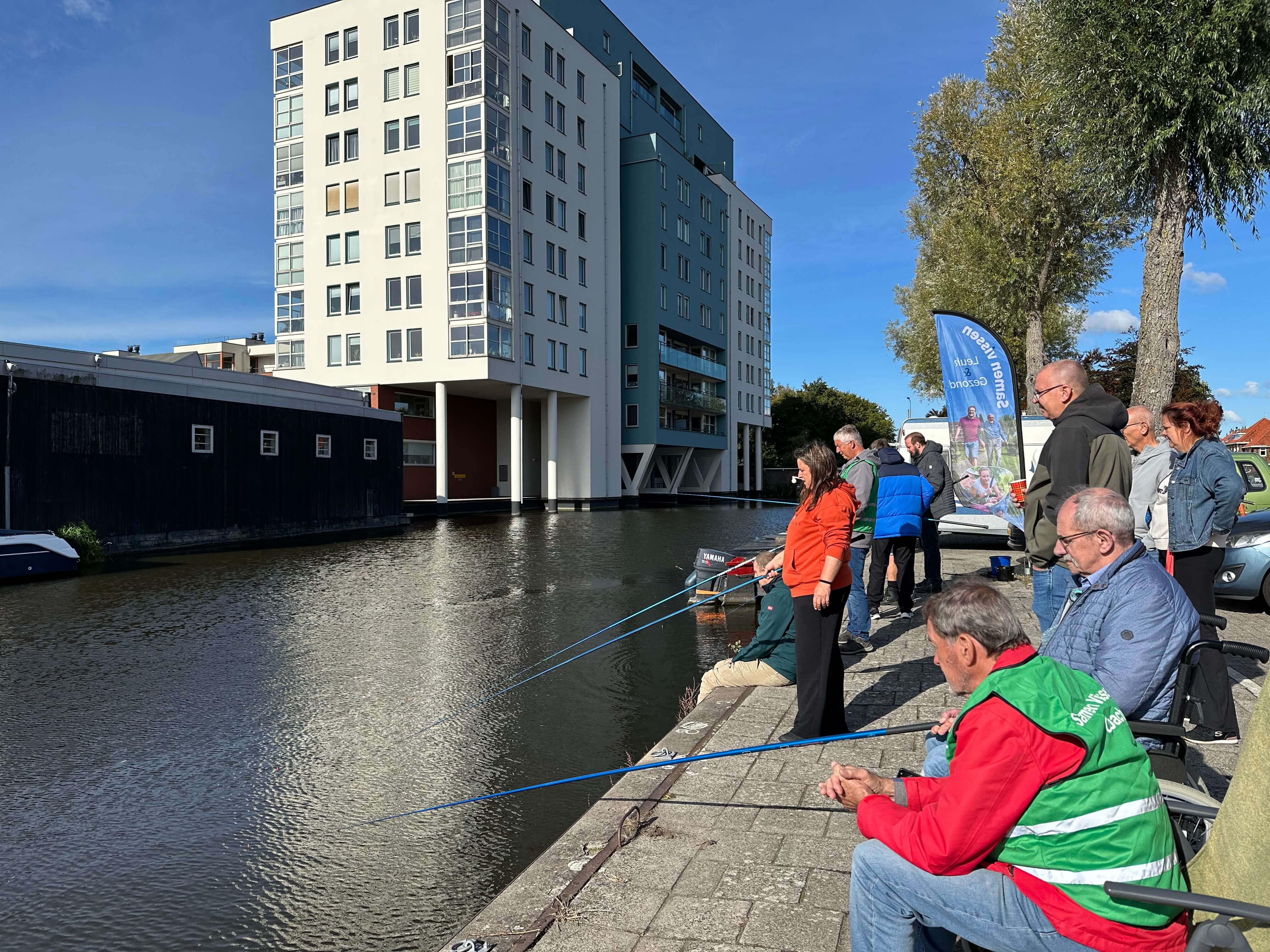 Vanaf de kade in alle rust naar de dobber kijken tot deze onder gaat, beet! Zeven inwoners van Woonzorgcentrum Topaz locatie Overduin genoten woensdag 24 september volop van een heerlijk ochtendje Samen VISsen met vijf van onze enthousiaste vrijwilligers.
